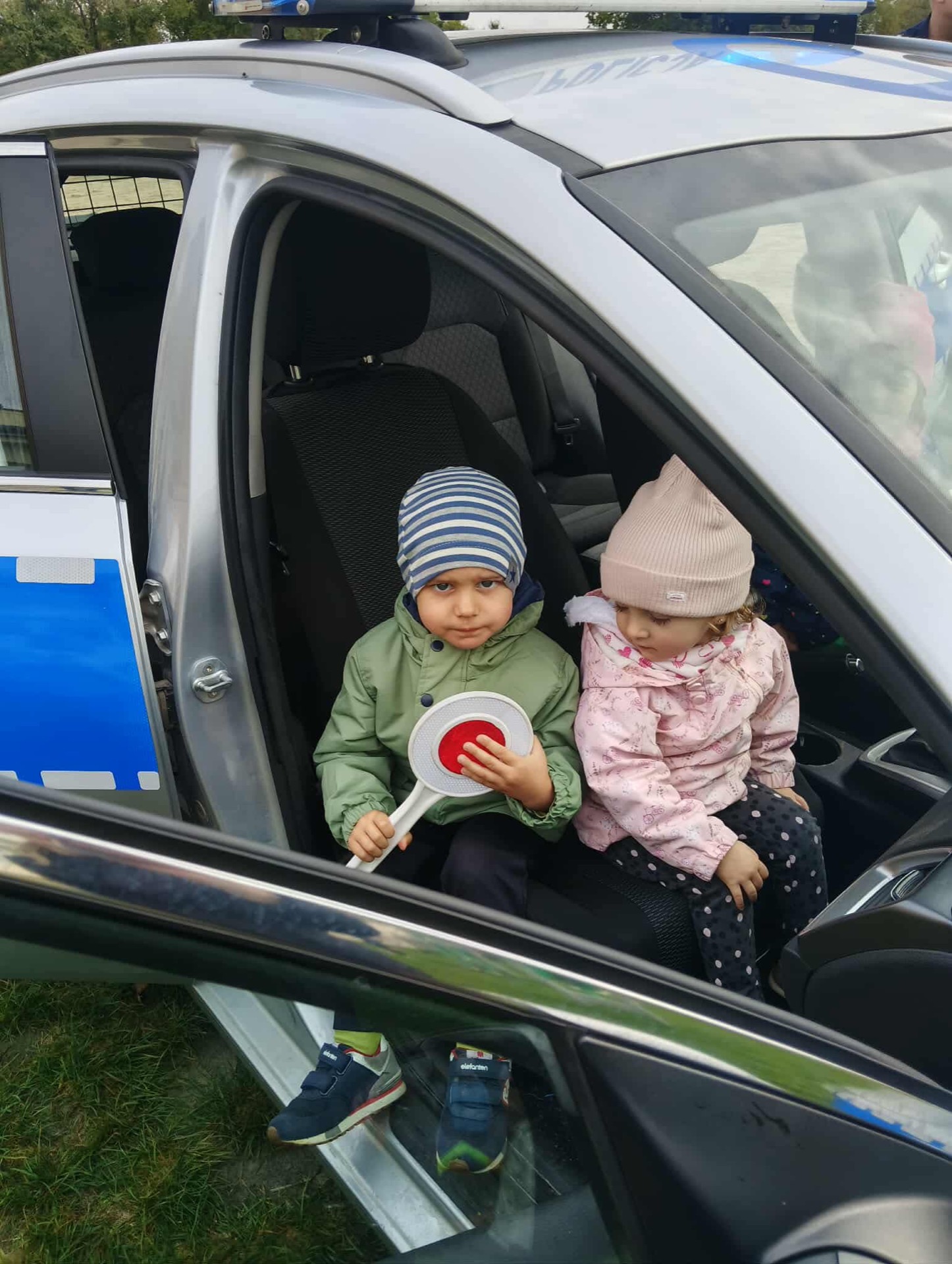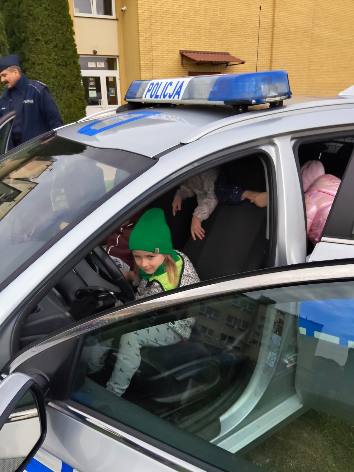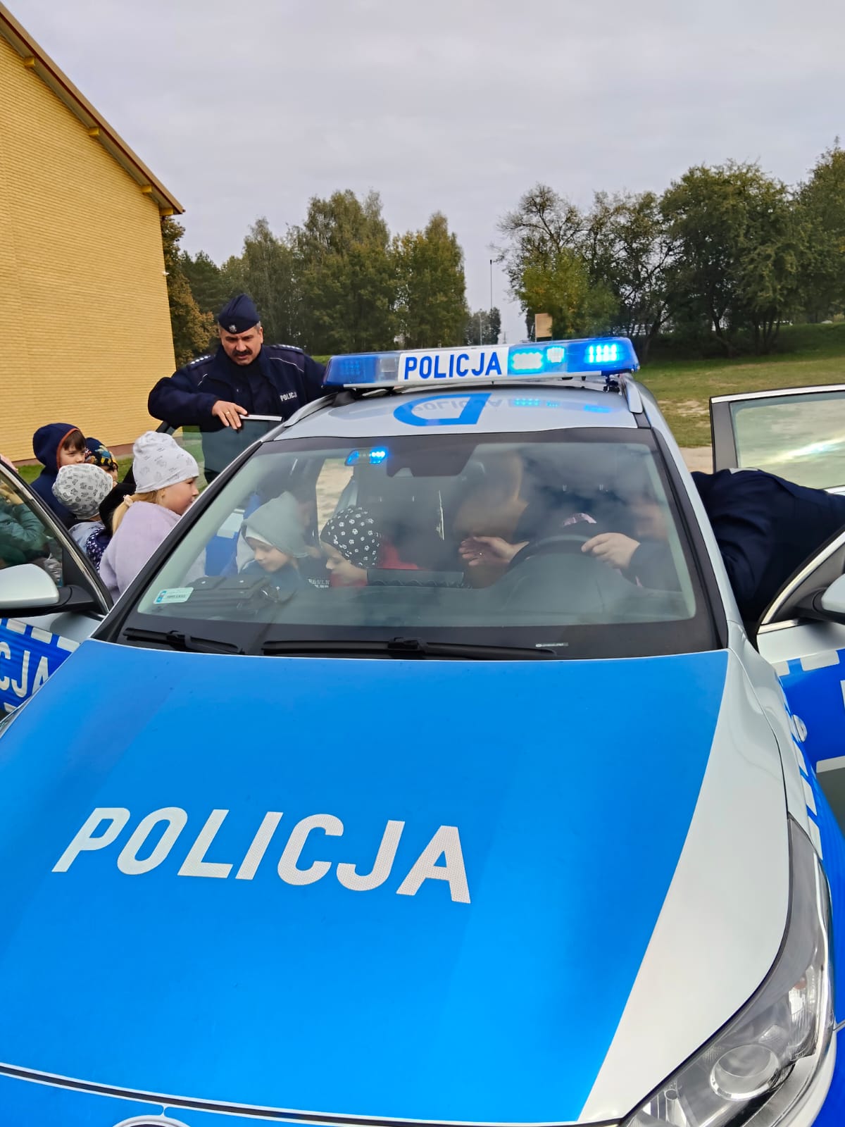 Największą atrakcją okazała się możliwość obejrzenia z bliska radiowozu policyjnego – dzieci mogły zajrzeć do środka i dowiedzieć się, do czego służy wyposażenie pojazdu. Spotkanie było bardzo ciekawe i z pewnością na długo pozostanie w pamięci przedszkolaków.
