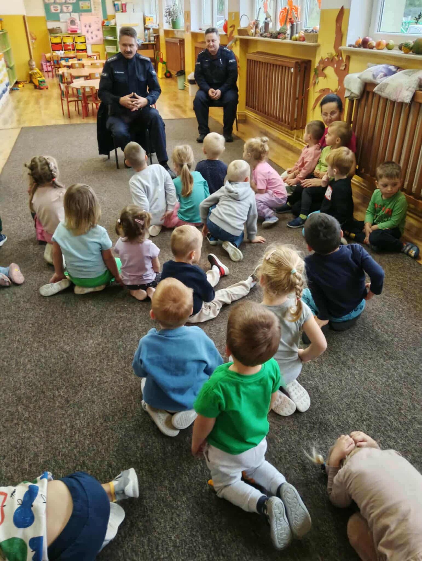 Nasze przedszkolaki odwiedzili wyjątkowi goście -Panowie Policjanci. Podczas spotkania dzieci rozmawiały o zasadach bezpieczeństwa w domu, w przedszkolu oraz na drodze. Nasi goście przypomnieli, jak ważne jest odpowiedzialne zachowanie i ostrożność w różnych sytuacjach.