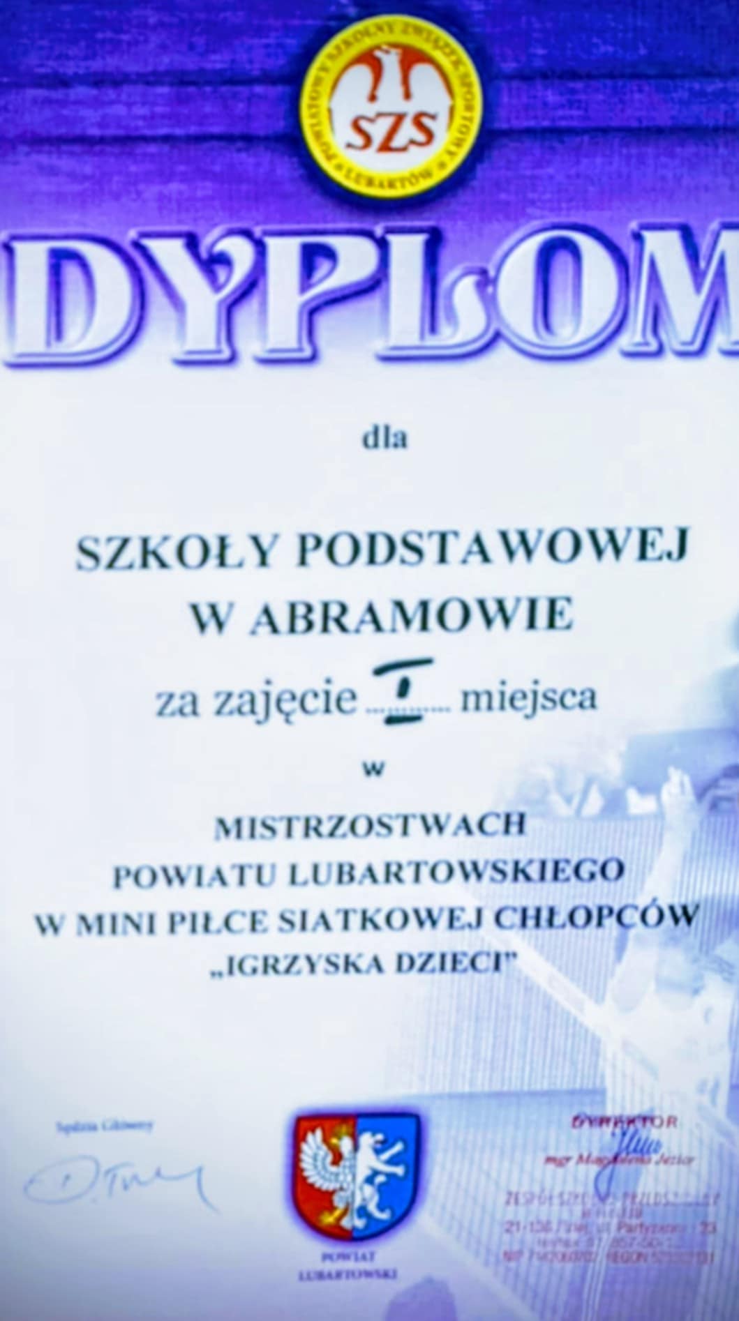 Uczniowie SP w Abramowie zdobyli I miejsce w Mistrzostwach Powiatu Lubartowskiego w mini piłce siatkowej chłopców.
